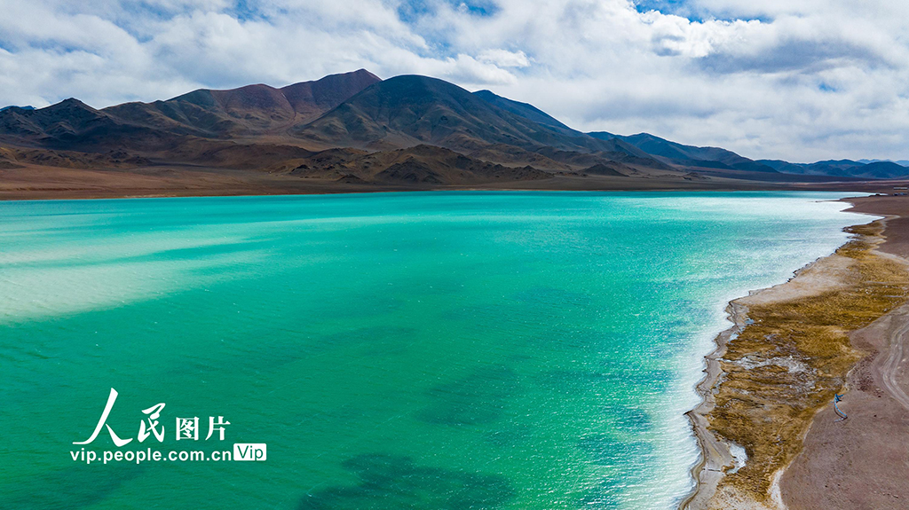 2025年4月20日,西藏自治區阿里地區改則縣物瑪鄉境內的物瑪錯,藍天白云之下,呈現出深綠、…