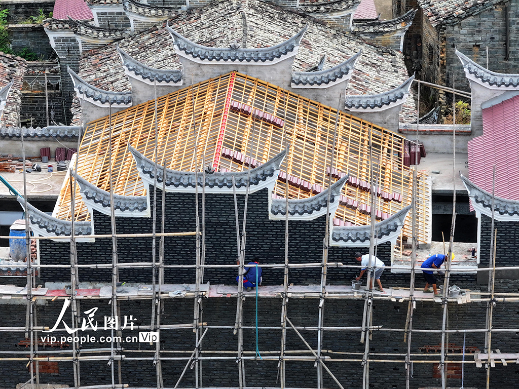 2025年8月26日,江西省吉安市泰和縣沿溪鎮獅前村一處古建筑正在修繕。江西泰和縣加大民間古…