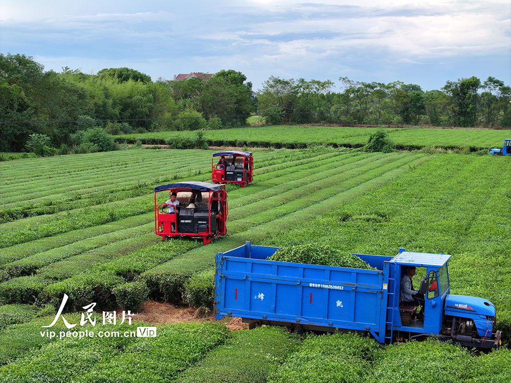 2025年9月8日,江西省吉安市泰和縣泰和墾殖場茶園,工人駕駛智能采茶機正在采收秋茶。江西泰…