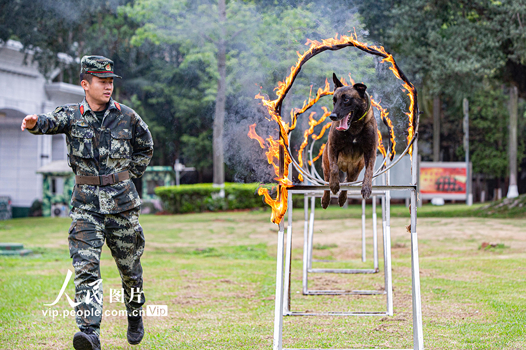 4月17日,武警廣西總隊機動支隊組織訓導員攜軍犬開展基礎服從、戰術越障、偵察…