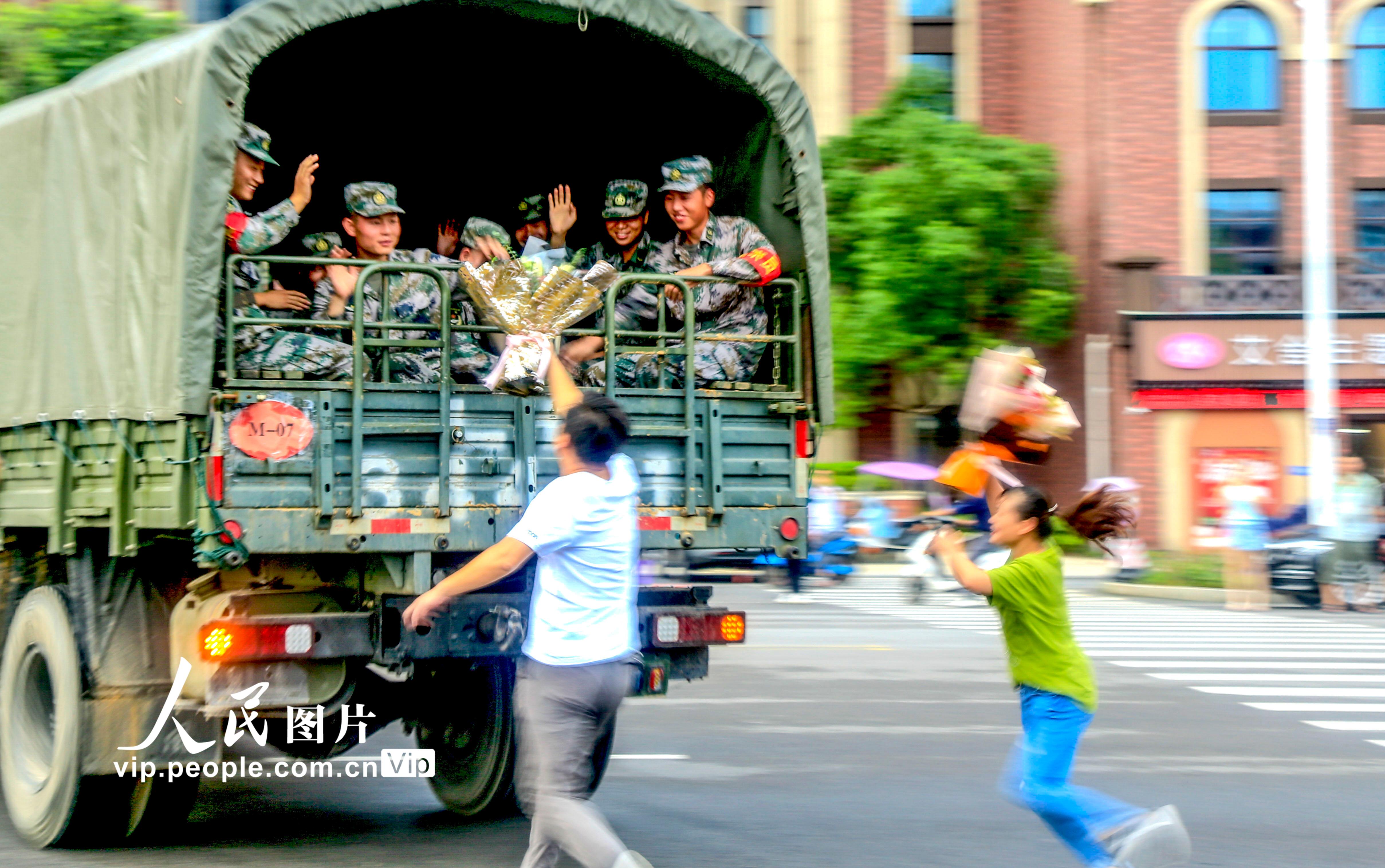 2020年8月9日,安徽省合肥市廬江縣城來廬抗洪搶險的東部戰區“太行勁旅”的…