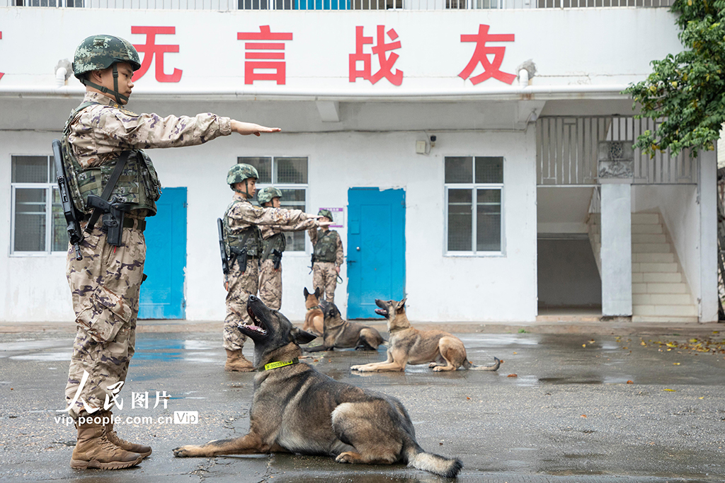 2023年1月12日,武警廣西總隊機動支隊組織官兵攜軍犬開展穿越障礙、協同追…