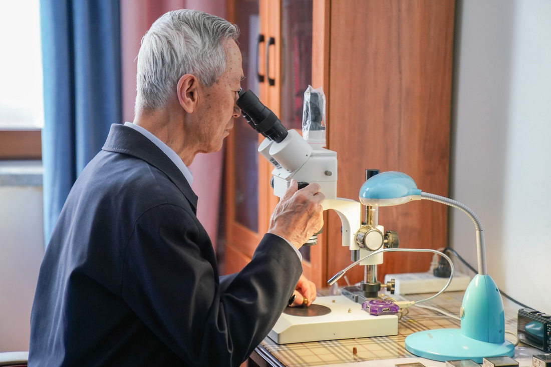 在哈爾濱市老年公寓房間中,崔道植在進行痕跡檢驗實驗(6月8日攝)。新華社記者…
