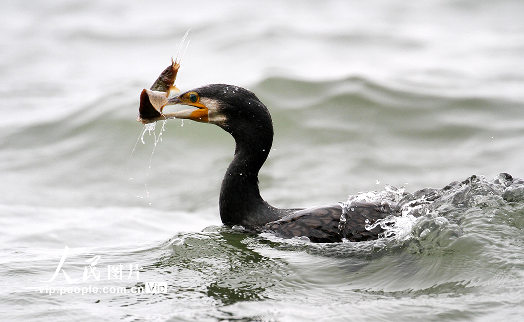 2025年10月12日,遼寧省沈陽市丁香湖,一群遷徙鸕鶿在覓食、嬉戲。黃金崑…
