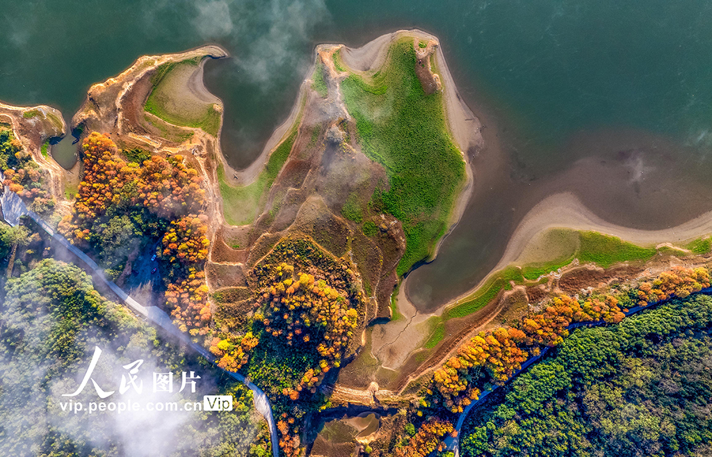 2024年11月30日,安徽省黃山市黃山區茶爾垅太平湖紅杉林與濕地、山巒構成…