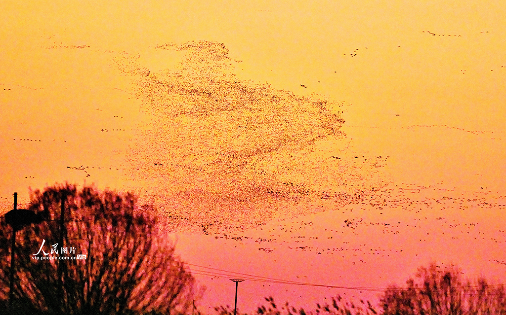 2024年12月2日,山東東營,黃河三角洲國家級自然保護區濕地上空現“鳥浪”…