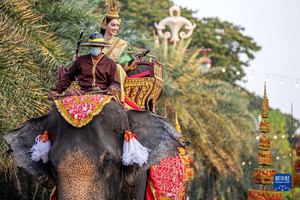 4月13日,在泰國大城府,演員參加街頭巡游活動慶祝宋干節。 每年…