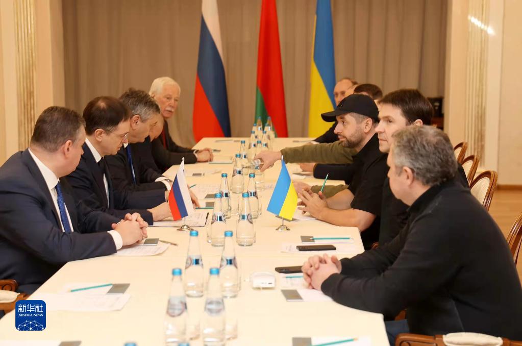 這是2月28日在白俄羅斯戈梅利州拍攝的談判現場。 俄羅斯代表團和…