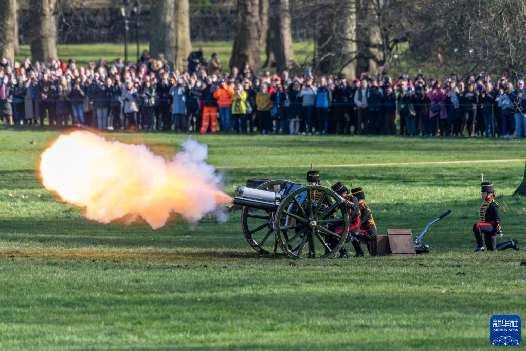 2月7日,英國士兵在倫敦白金漢宮旁的格林公園鳴放禮炮,慶祝女王伊麗莎白二…