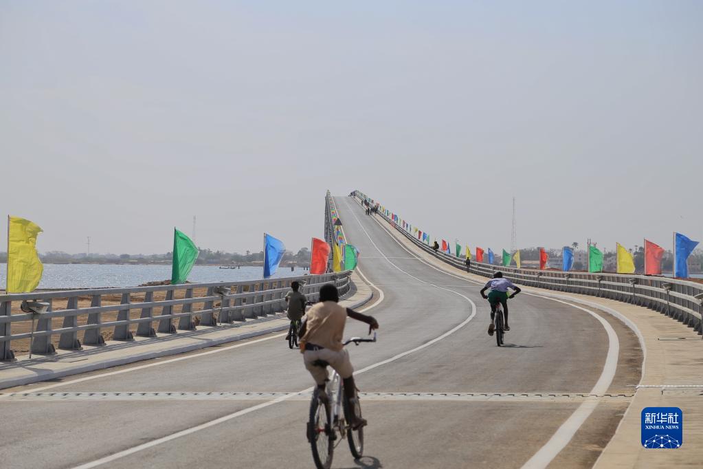 1月16日,人們騎車通過位于塞內加爾法蒂克大區方久尼市的方久尼大橋。新華社記…