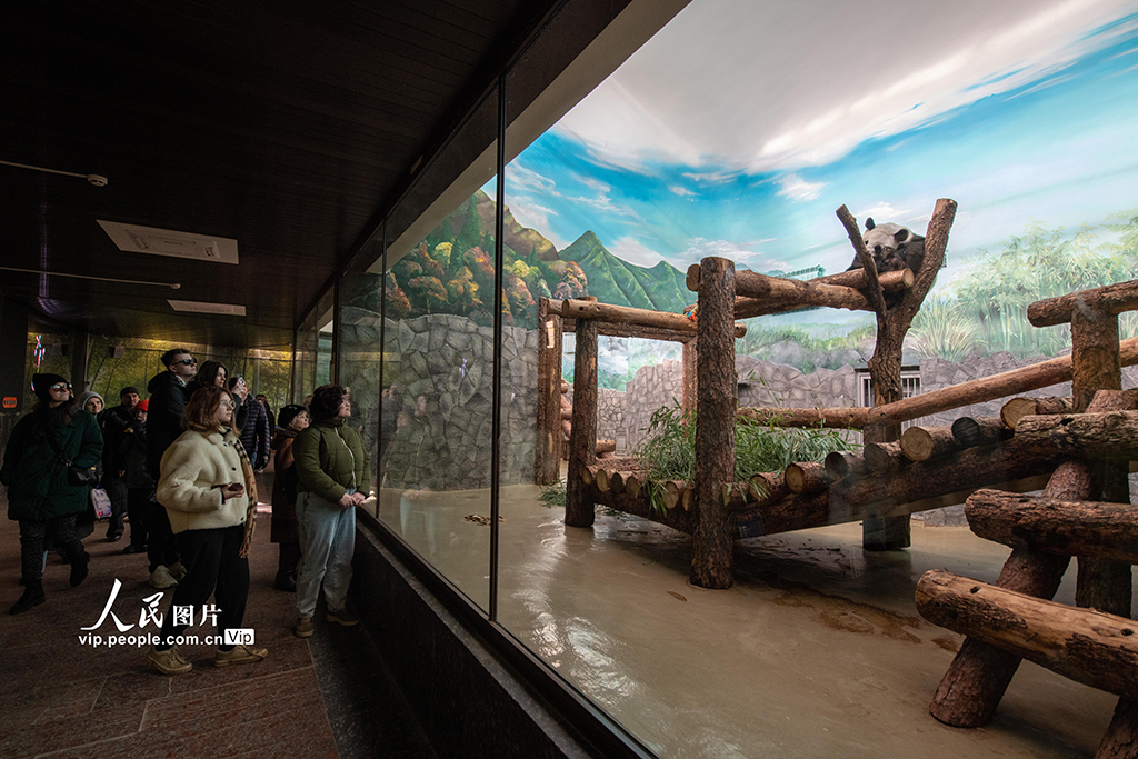 當地時間2023年3月19日,在莫斯科動物園,前來觀賞大熊貓“如意”和“丁丁…