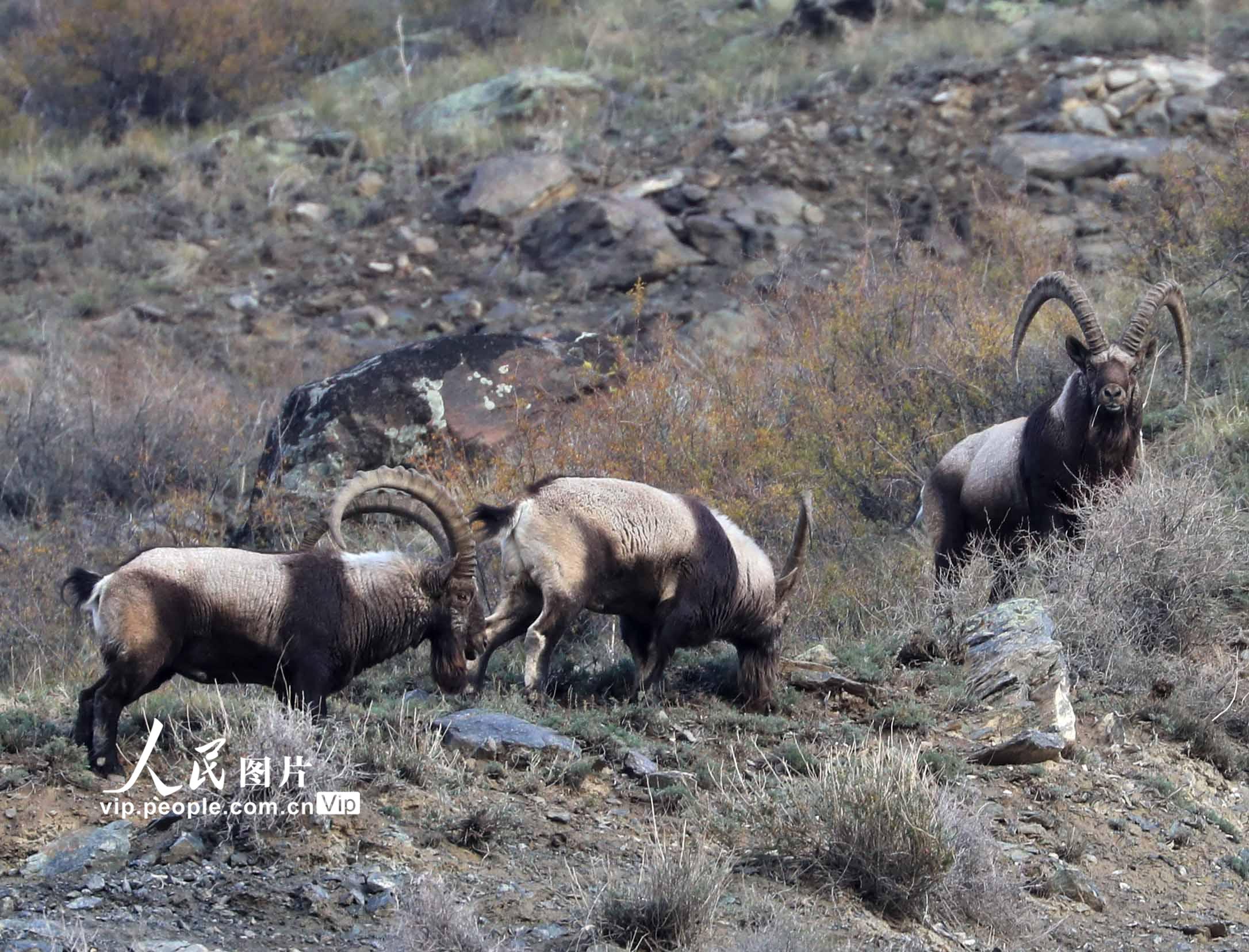 2020年10月14日,在新疆富蘊226省道峽谷山上拍到的北山羊覓食。 …
