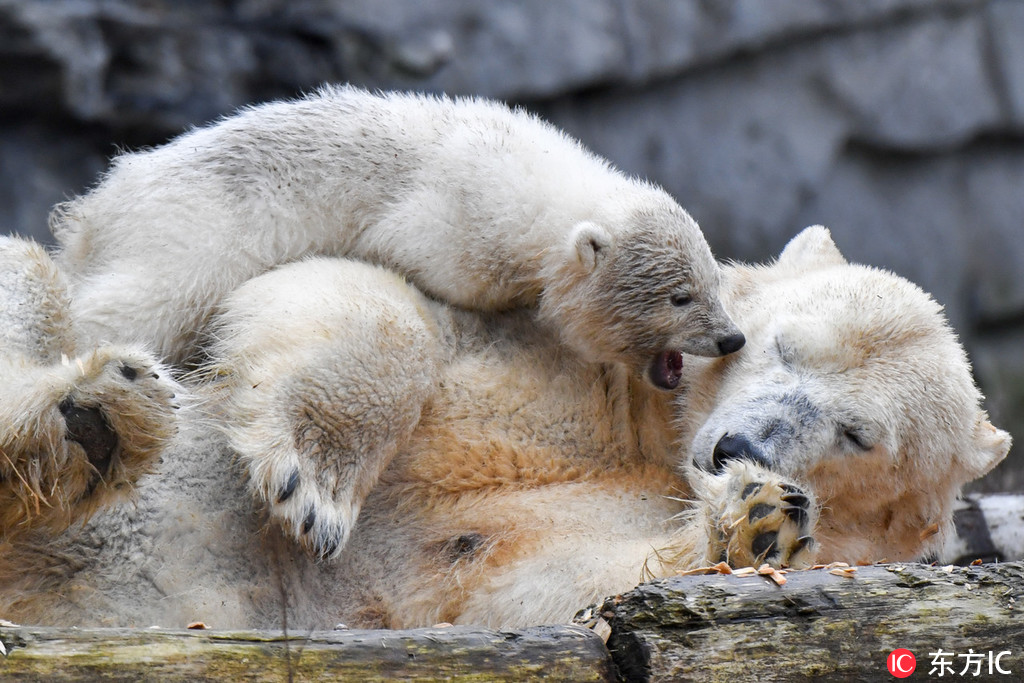 當地時間2019年3月18日,德國柏林,柏林動物園里,3個多月大的北極熊寶寶…