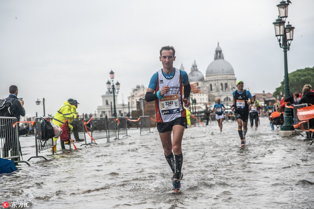 當地時間2018年10月28日,意大利威尼斯,威尼斯水位上漲,水漫街頭民眾悠…