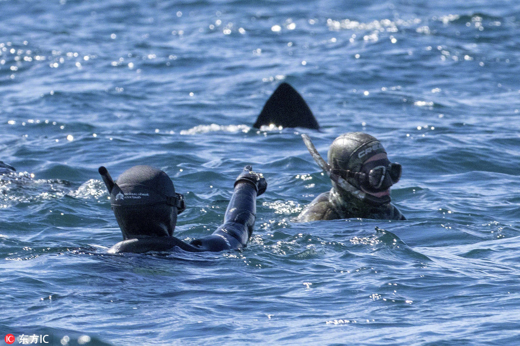正在海中浮潛,一回頭卻發現自己背后跟著一頭鯊魚?近日一群潛水員不久前便遭遇了…