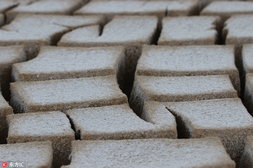 2018年10月10日,青島李村河一小塊河床龜裂如豆腐塊。在青島李村河入??凇?/a>
