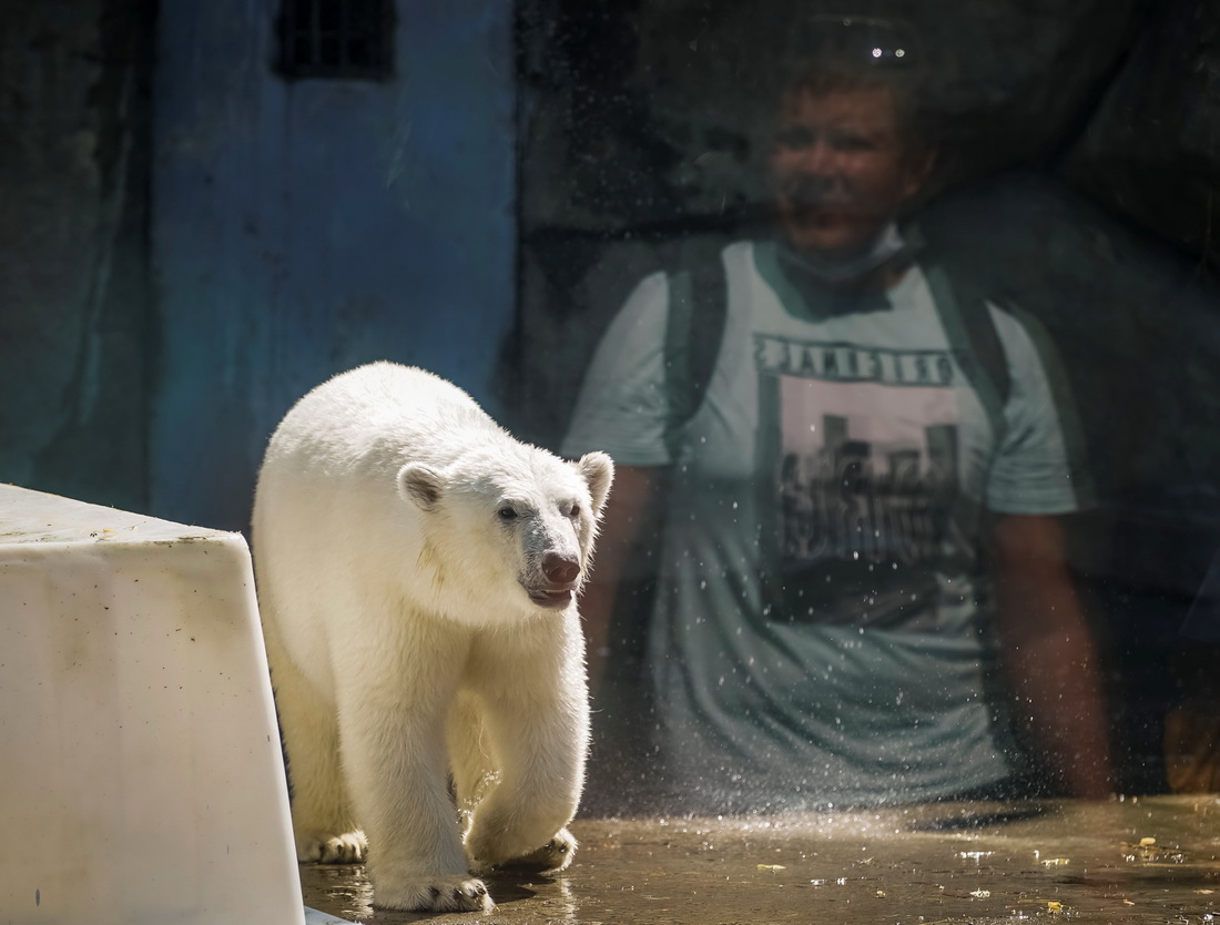 這是7月12日在俄羅斯莫斯科動物園拍攝的一只北極熊。新華社/路透 …