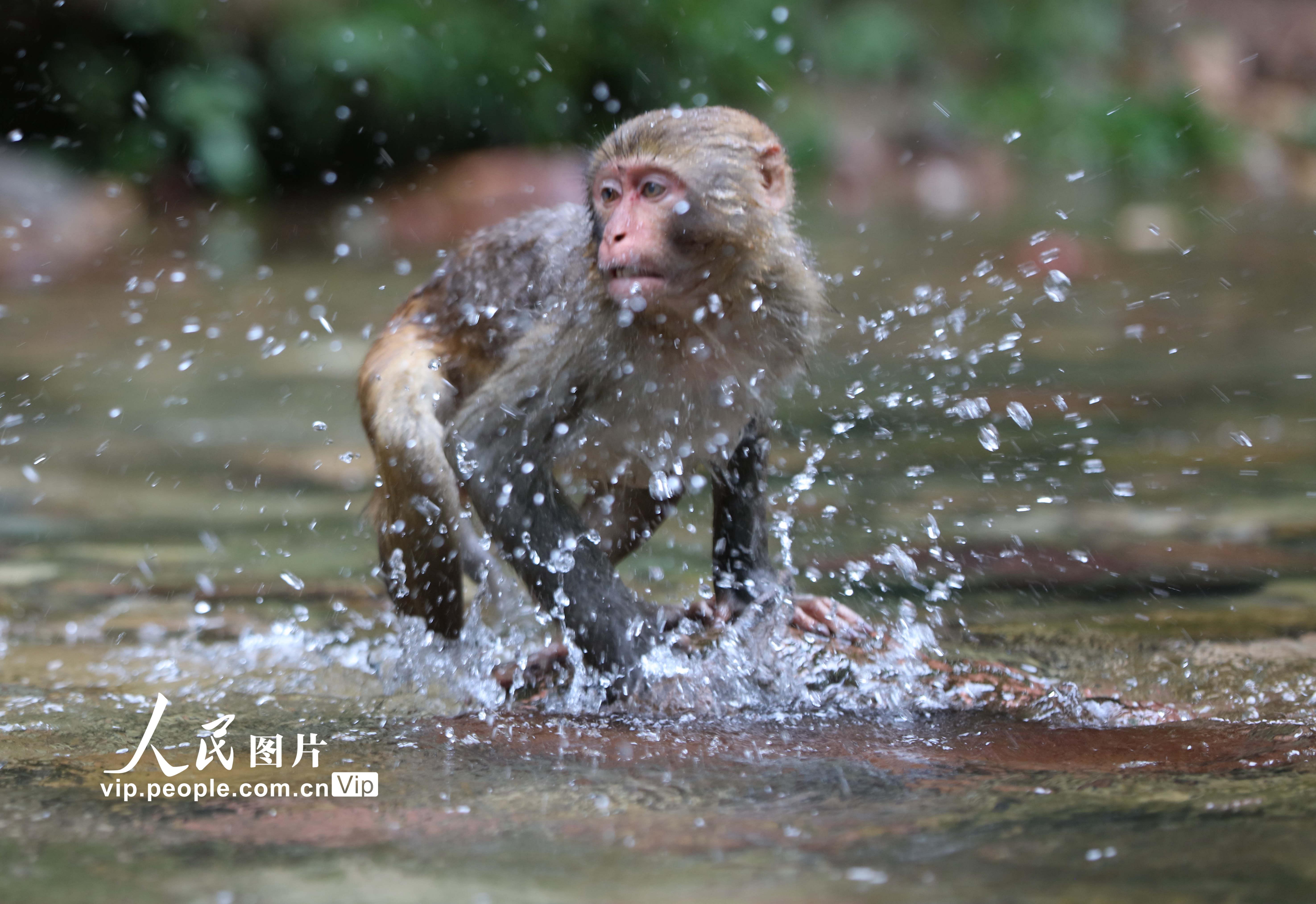 盛夏時節,在湖南張家界國家森林公園金鞭溪,成群的野生獼猴有的玩耍嬉戲,有的在…