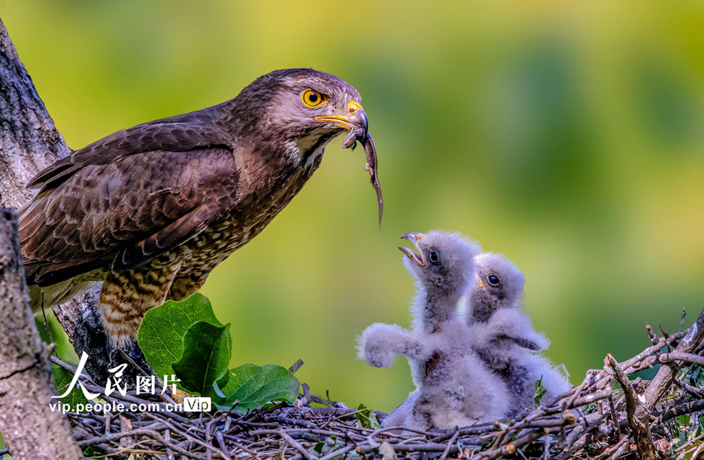 2021年6月8日,山東省日照市五蓮縣叩官鎮九仙山,灰臉鵟鷹正在育雛。肖學平…
