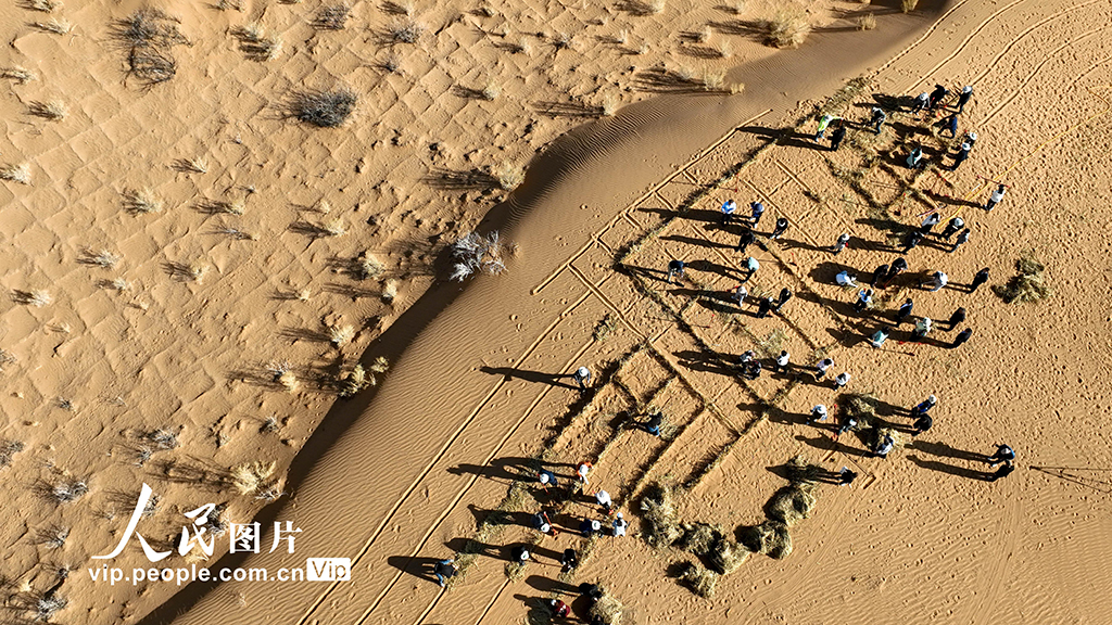 2024年4月10日,甘肅省張掖市臨澤縣北部荒漠防沙治沙區,河西學院的大學生…