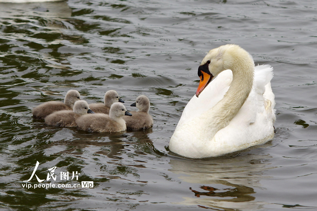 2021年4月24日,河北省邯鄲市雞澤縣毛遂濕地公園內,出生不久的白天鵝寶寶…