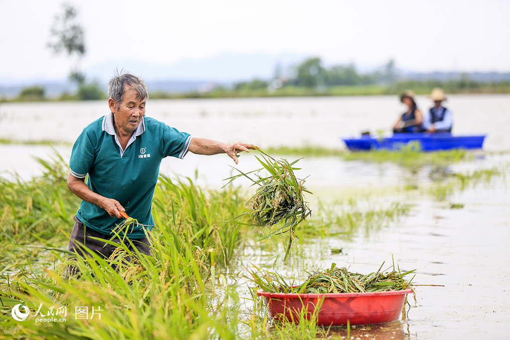 連日來,江西省九江市都昌縣左里鎮農民抓緊時間搶收被洪水淹沒的早稻,盡量減少損…