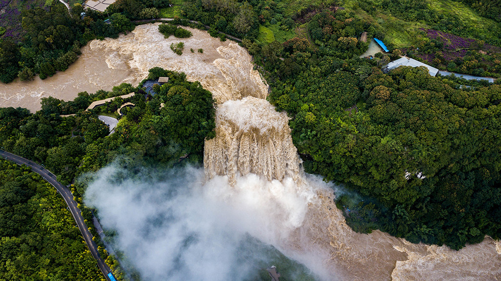 受強降雨影響,貴州黃果樹瀑布迎來2020年入汛以來最大水量,黃果樹瀑布水勢磅…