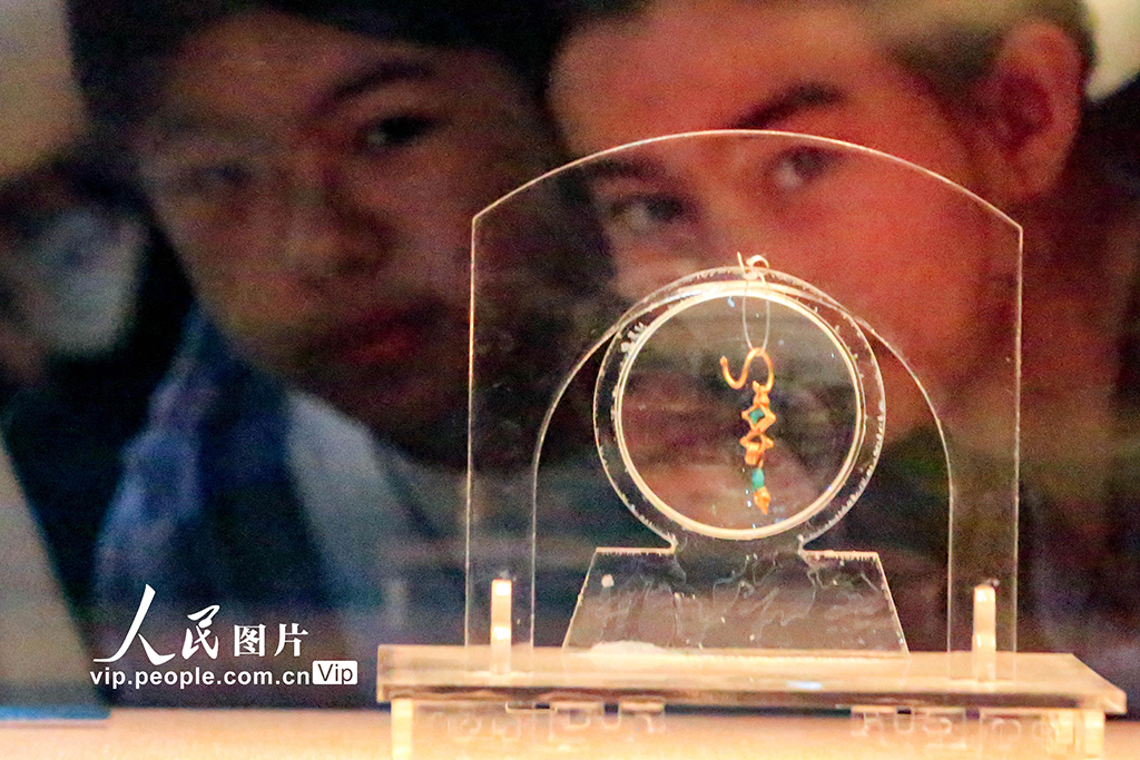 2024年4月26日,游客在四川省廣漢市三星堆博物館內參觀,感受古蜀文化的神…