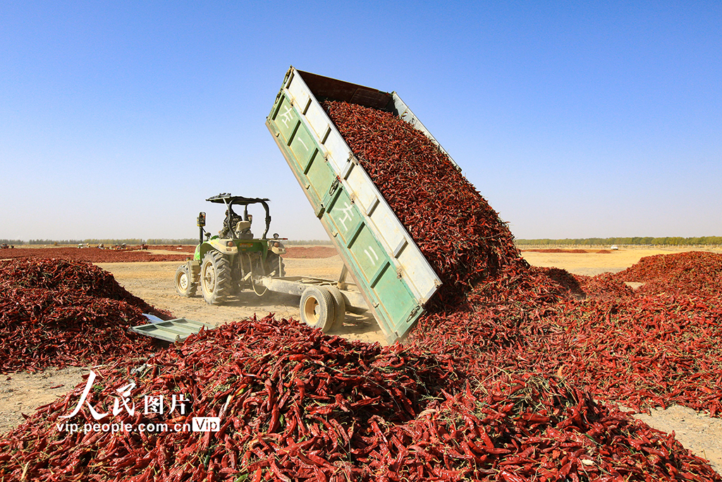 2025年10月19日,甘肅省嘉峪關市新城鎮新城村辣椒種植基地,農民忙著采摘…