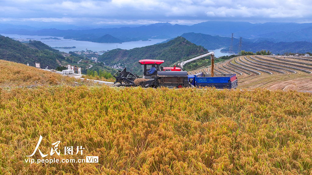2025年10月19日,浙江省杭州市淳安縣千島湖鎮青溪村,層層疊疊的梯田水稻…