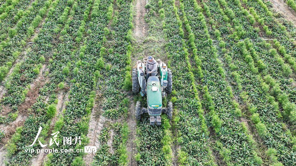 2025年10月15日,甘肅酒泉金塔縣健康農業中藥材產業園板藍根種植基地,工…