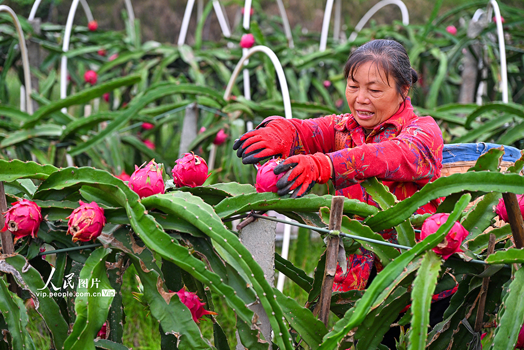 連日來,四川省眉山市仁壽縣懷仁街道吊慶社區的火龍果喜迎豐收,果農們忙著采摘、…