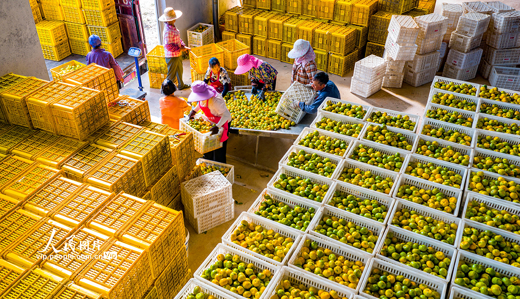 2025年10月10日,江西省新余市渝水區一家蜜桔種植基地,果農忙著篩選、裝…