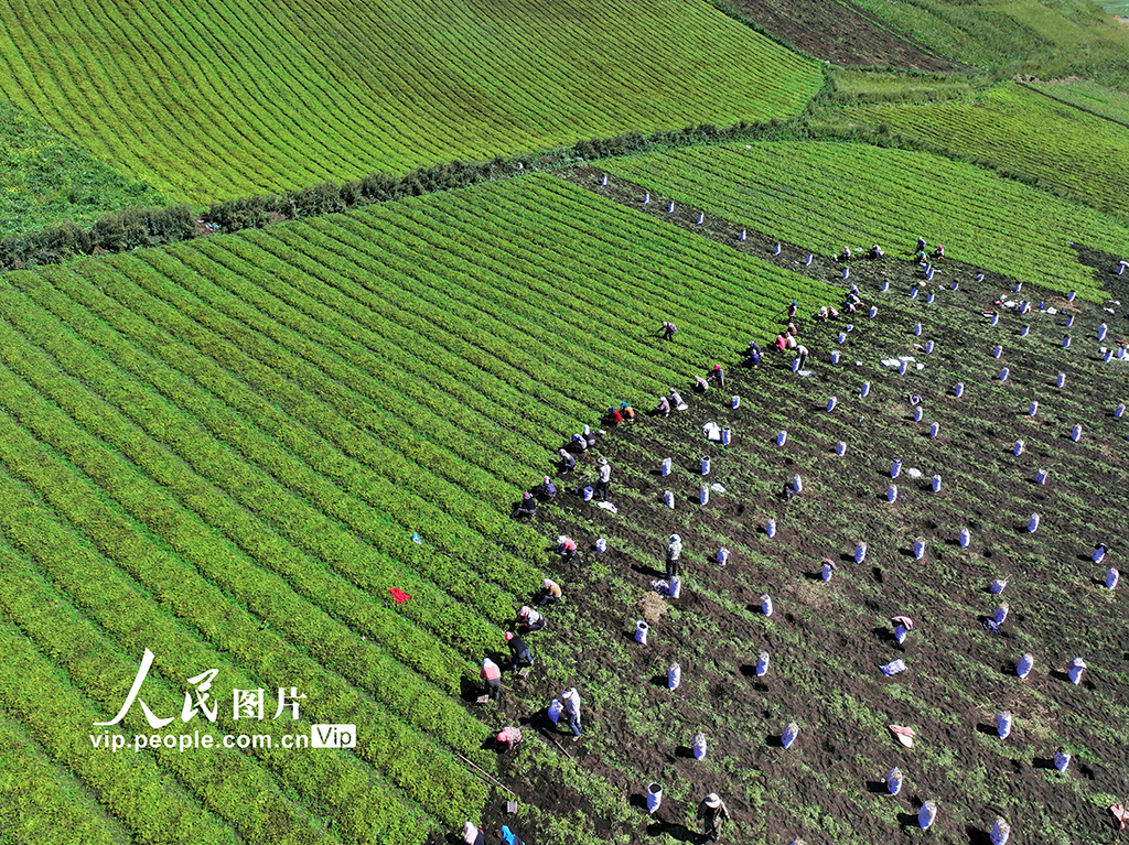 2025年10月2日,甘肅省定西市岷縣閭井鎮,村民在采挖當歸苗。 近日,正值…