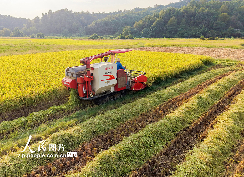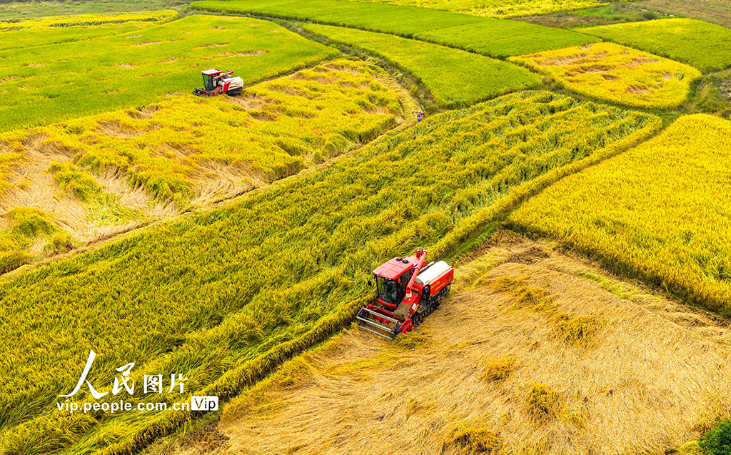 金秋時節,江西省九江市都昌縣各地晚稻進入收獲期,農民利用晴好天氣,搶收搶曬,…