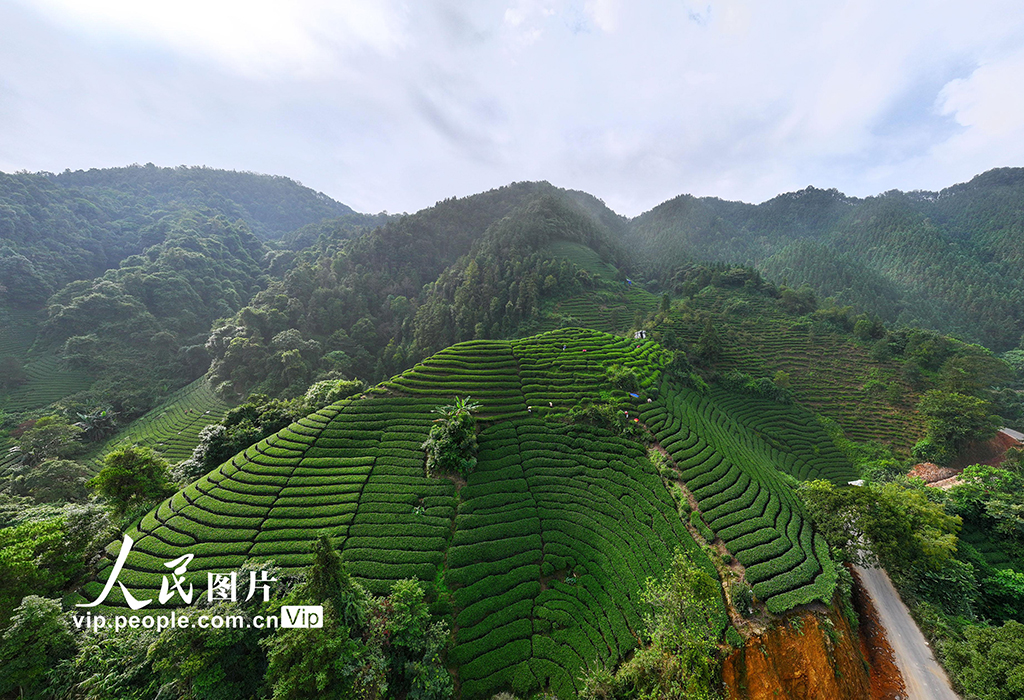 2025年10月3日,茶農在廣西昭平縣城郊的高山生態茶園采摘秋茶。喻湘泉攝(…