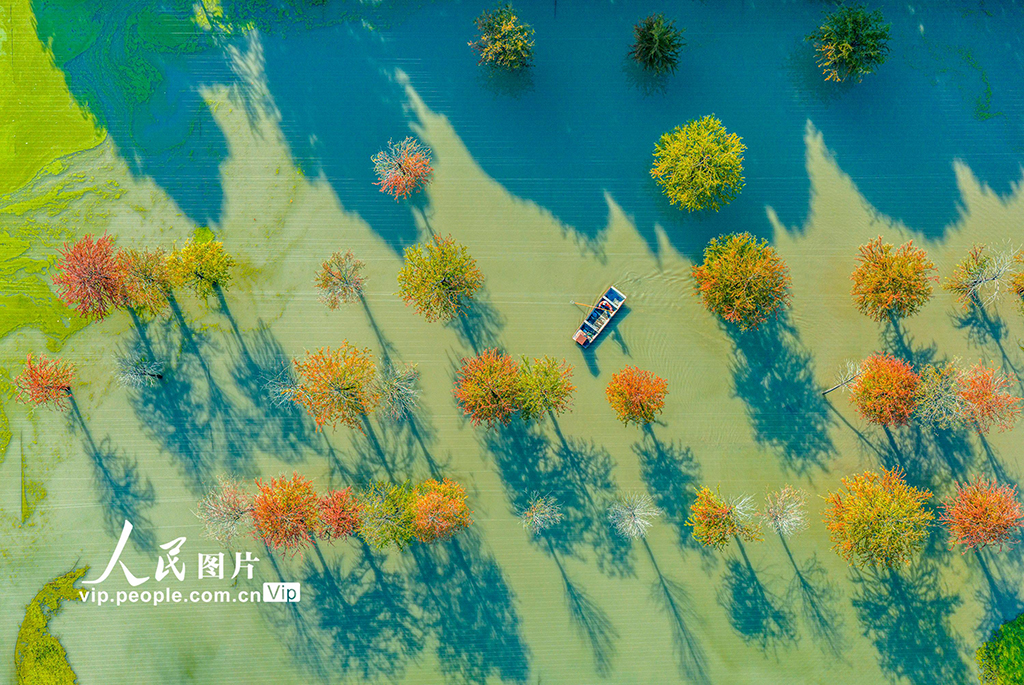 2025年10月22日,江蘇省宿遷市泗洪縣臨淮鎮水杉林螃蟹養殖基地,養殖戶乘…