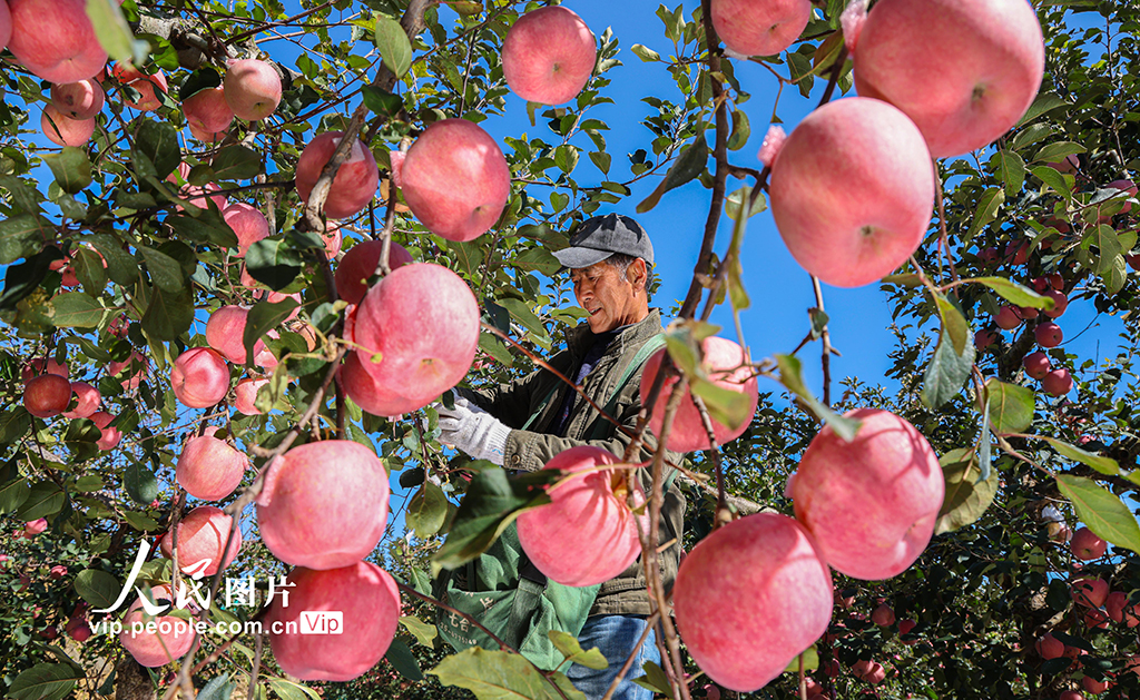 2025年10月23日,山東省乳山市馮家鎮上口村,果農正在加緊采收、分揀、裝…