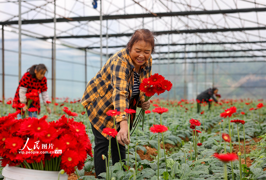 時下,位于貴州省銅仁市玉屏侗族自治縣朱家場鎮茅坡村種植的非洲菊競相綻放,村民…