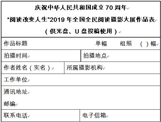 “閱讀改變人生”2019年全國全民閱讀攝影大展征稿啟事