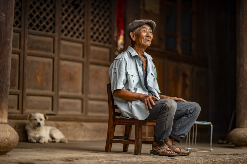 錢永福的長子、今年73歲的錢緒文坐在自家大院里(7月22日攝)。新華社記者 江文耀 攝