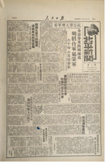 1949年8月1日出版的《人民日報》(北平新聞)創刊號,紀念人民解放軍建軍22周年