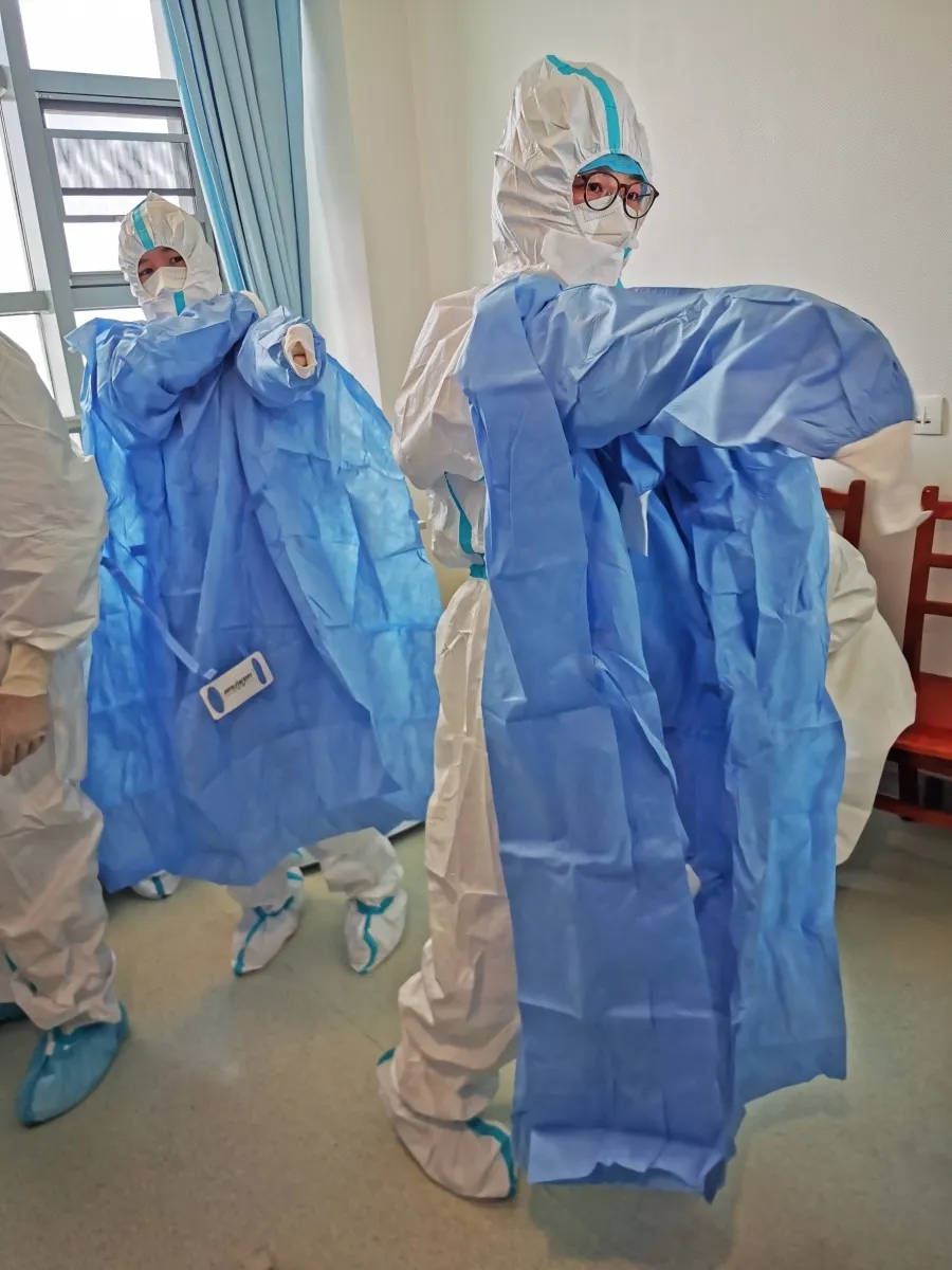 2月22日,武漢同濟醫院中法新城院區,準備進入隔離病區的北京醫院醫療隊醫護小組正在穿戴隔離裝備。醫護人員分組輪班進入隔離病區工作,每次進入,護士們都要認真準備將近半個小時,至少穿戴8件裝備,穿越5道隔離門進入“紅區”,再在里面工作至少4個小時。北京醫院醫療隊專門配備了感控幫助醫護人員穿戴,檢查疏漏,力爭做到萬無一失。陳黎明 攝