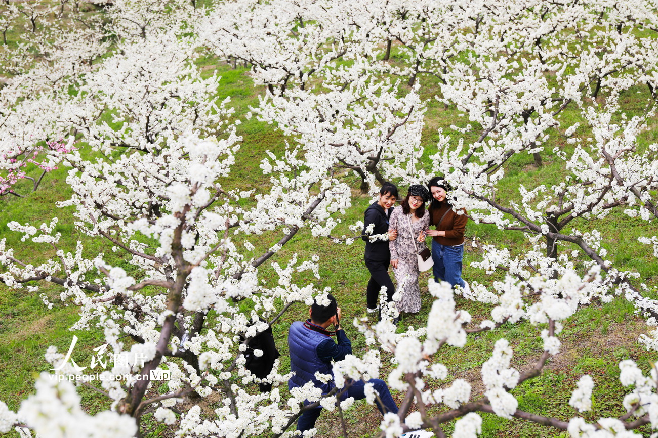 3月24日,重慶市梁平區梁山街道天鼓村海拔1000多米的500多畝高山李子樹的李花開得嬌艷無比,吸引了眾多游人前來踏青、賞花,感受春光的美好。劉輝/人民圖片