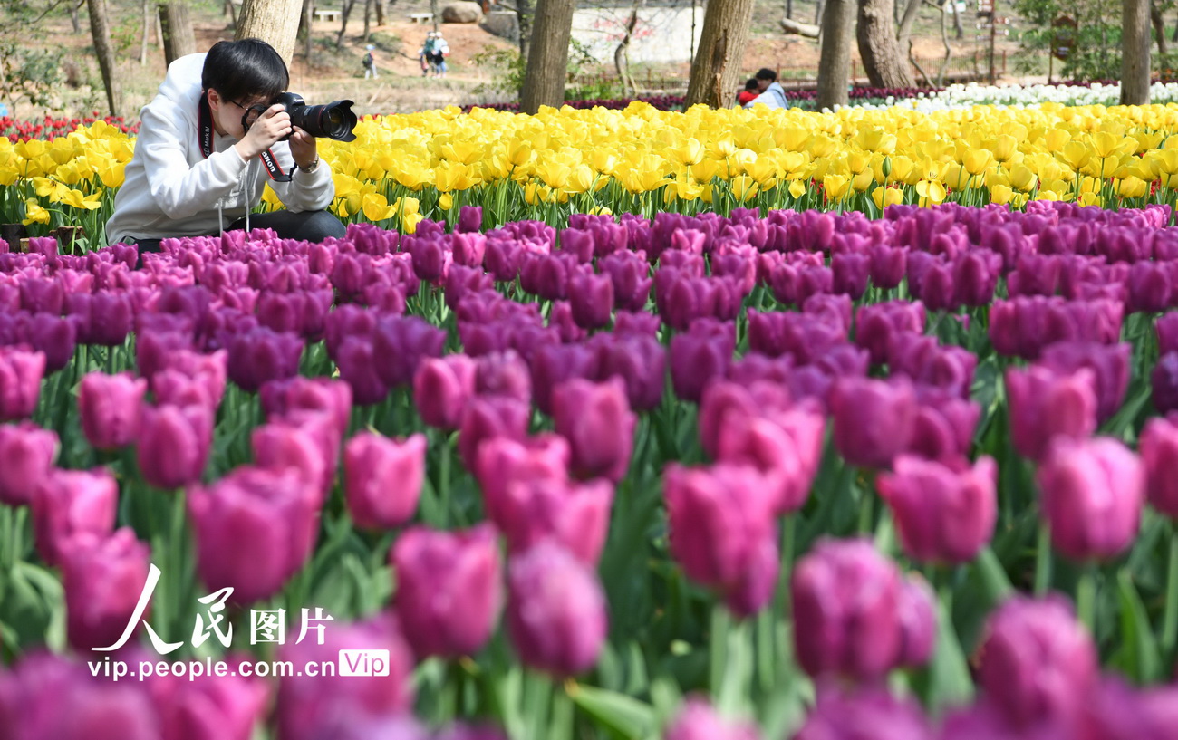 2020年3月24日,安徽淮南市八公山風景區內,郁金香盛開,游客在賞花中享受春光。陳彬/人民圖片