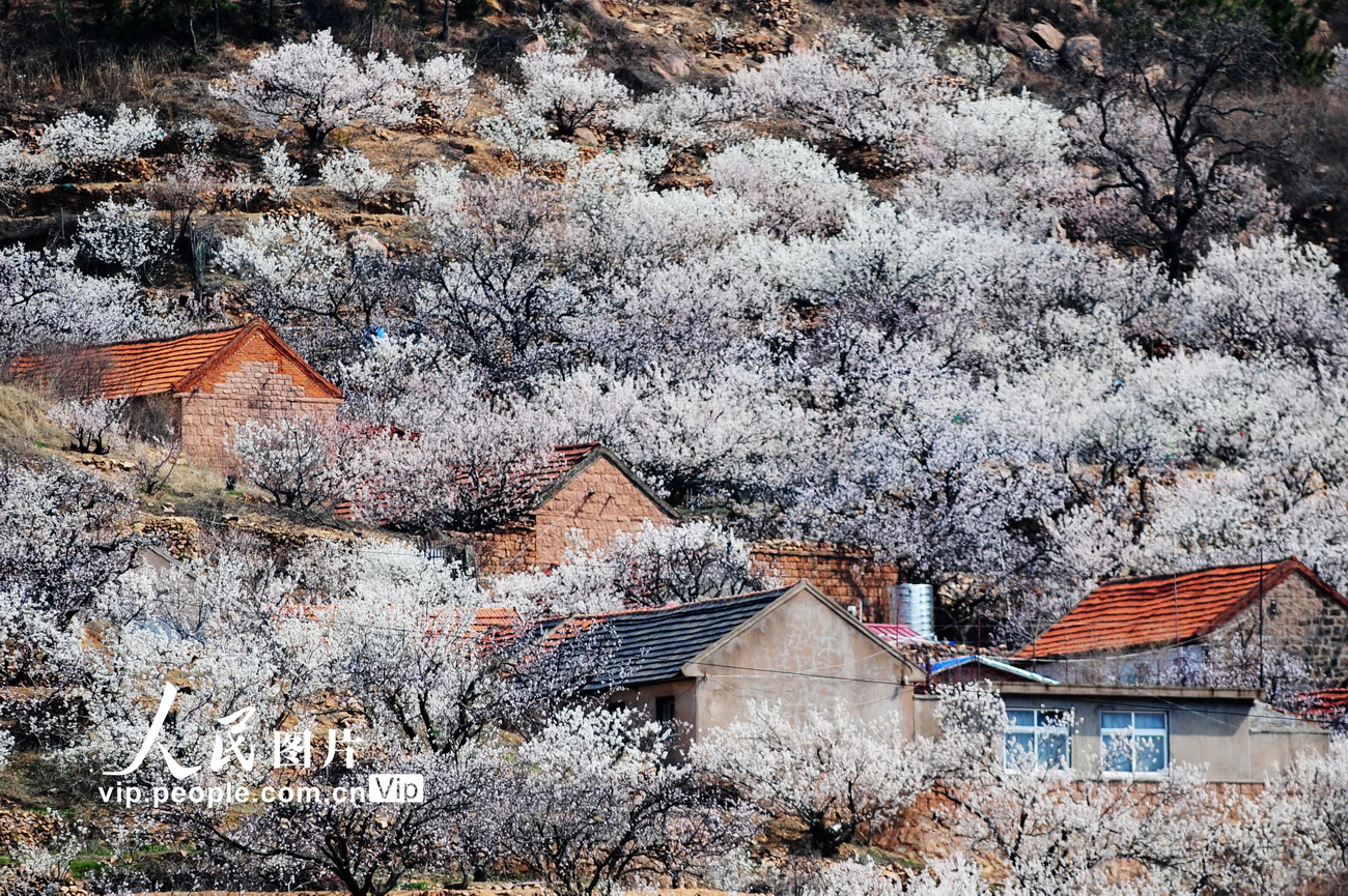 3月24日,陽春三月,山東省青島市城陽區夏莊街道采摘園里的杏花、櫻桃花漫山盛放、潔白如雪。王海濱/人民圖片