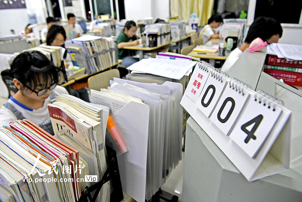 2020年7月3日晚,安徽淮南二中,高三學生在教室里上高中階段最后一堂晚自習課,沖刺高考。陳彬/人民圖片