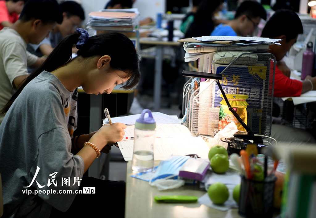 2020年7月5日,湖南省永州市道縣第二中學的高三學生在教室早自習。2020年全國高考臨近,高三學生認真復習備考。蔣克青/人民圖片