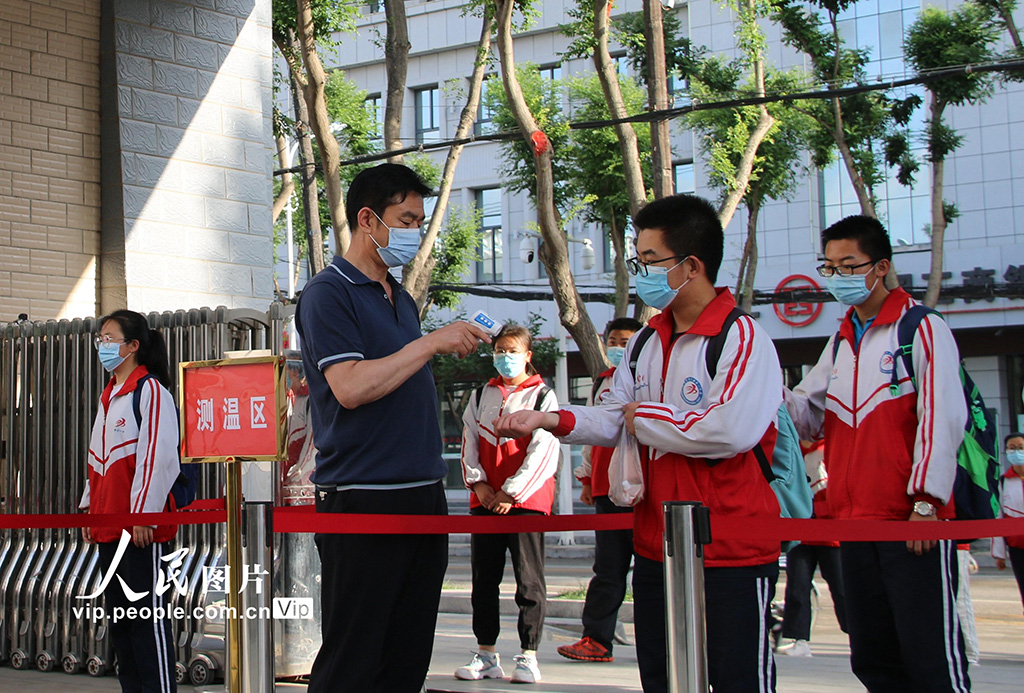 為加強突發事件應急防控,確保2020年高考安全順利,2020年7月4日,甘肅省平涼市靜寧一中高考學子按高考正常流程舉行了高考模擬演練,讓考生熟悉流程,以更平和的心態迎接高考,確保實現“平安高考”“陽光高考”“公平高考”。王毅/人民圖片