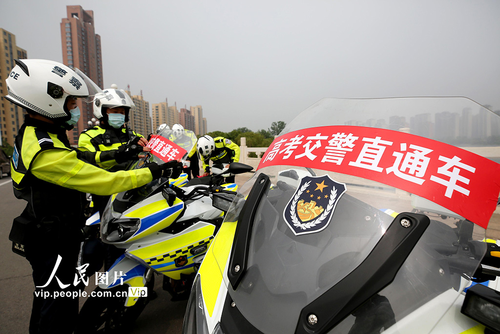 2020年7月5日,在高考即將到來之際,山東省棗莊市公安局市中分局交通警察大隊組織高考服務鐵騎隊亮相棗莊城區街頭,展開“禁鳴、禁放、禁噪”專項整治,并將在高考期間處理突發事件,為高考的考生和家長提供應急服務和幫助,為考生營造良好的考試環境。孫中喆/人民圖片